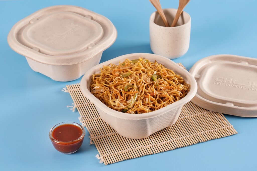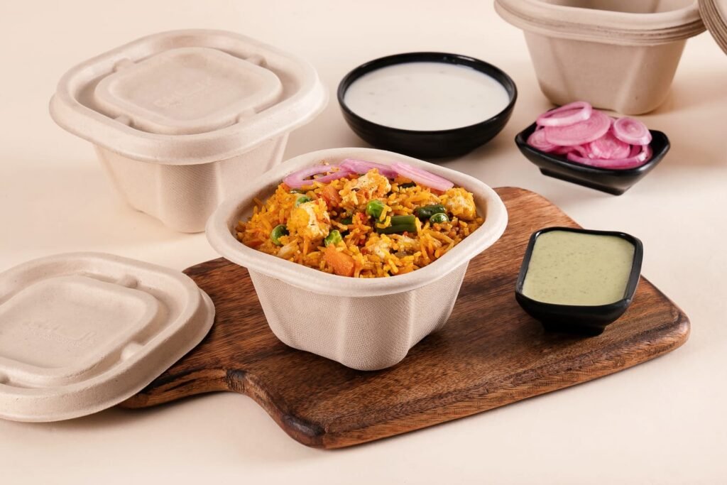 - Perfect bagasse delivery container for restaurants, QSRs, canteen, etc.